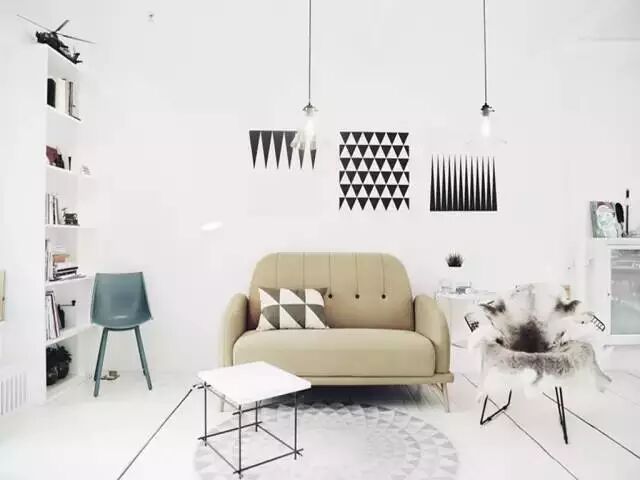 这里充满着工业纽约风格,黑白的性冷淡色调,复古的黑胶唱片机。极简主义和复古元素的混搭,巧妙又低调。