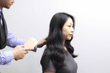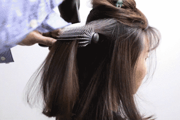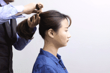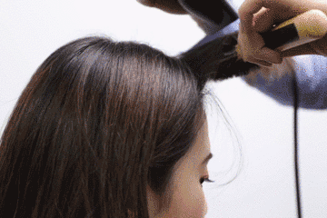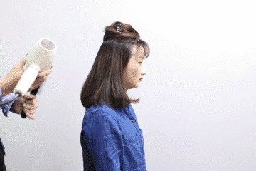 整理下面头发时,先用发梳和风筒带一遍,吹顺头发。第二遍时,在发尾处往内收,稍微停留一下,就能吹出自然的内扣发尾。