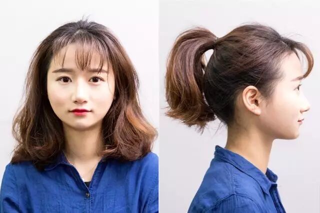 发型师建议,将马尾扎在下巴→耳朵的延长线上。
