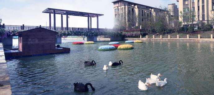 东岸枕水花园,中心景观轴和私人花园景观映入眼帘,玉楼珠殿已是陪衬,潺潺流水,无限江山,低吟浅酌间,莫问今宵酒醒何处;西岸邻里公园,棋语健身,亲子活动公园,中心艺术公园,三个主题活动公园和6个迷你景观公园,承载睦邻亲爱,晏晏言笑。