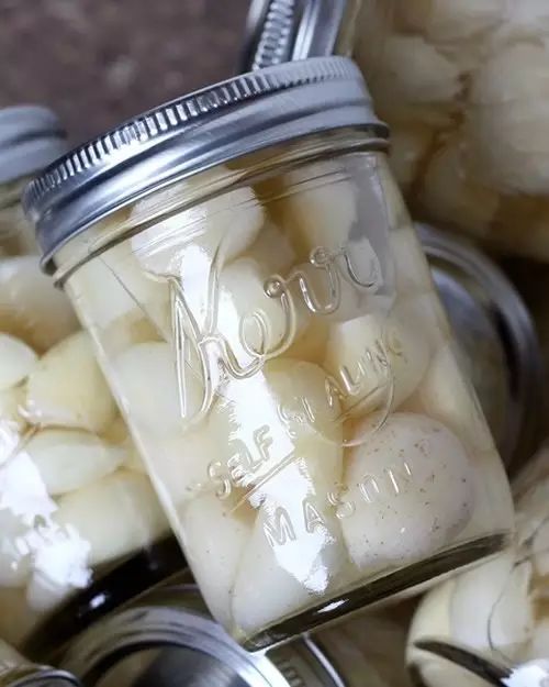 ▼海味容易霉变,如干鱼、干虾、海带等。烘干后,将大蒜瓣铺在罐子里,然后放入海味,拧紧,可长期保存。