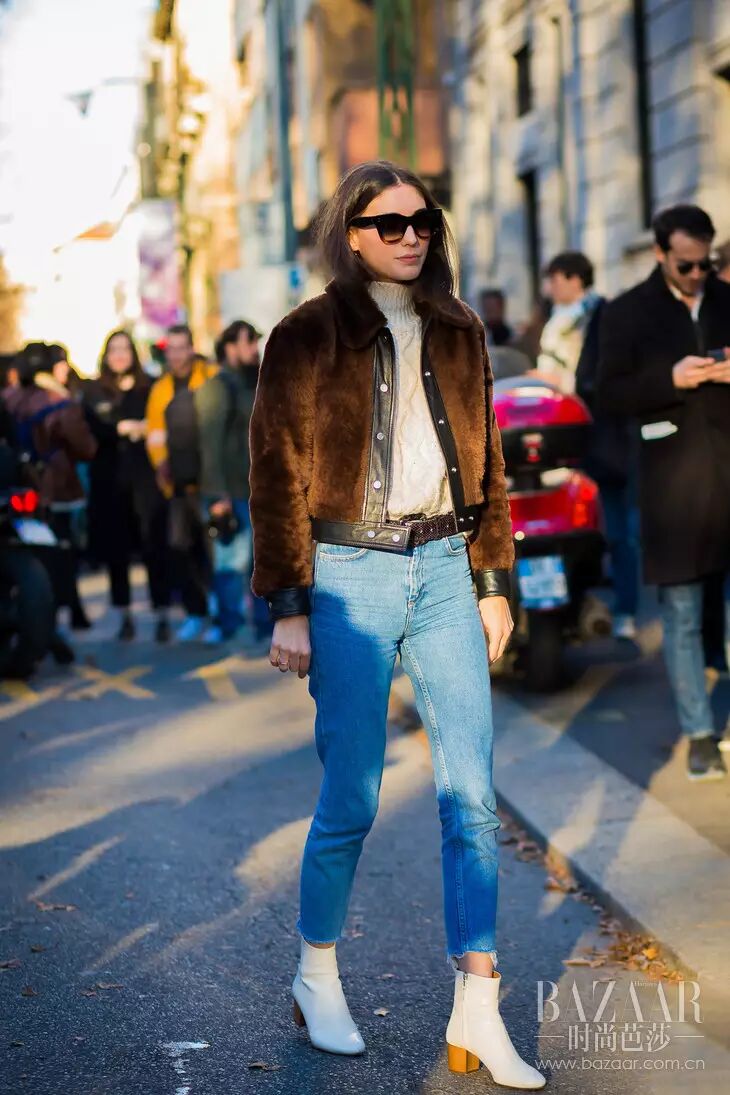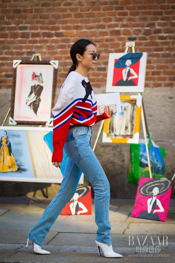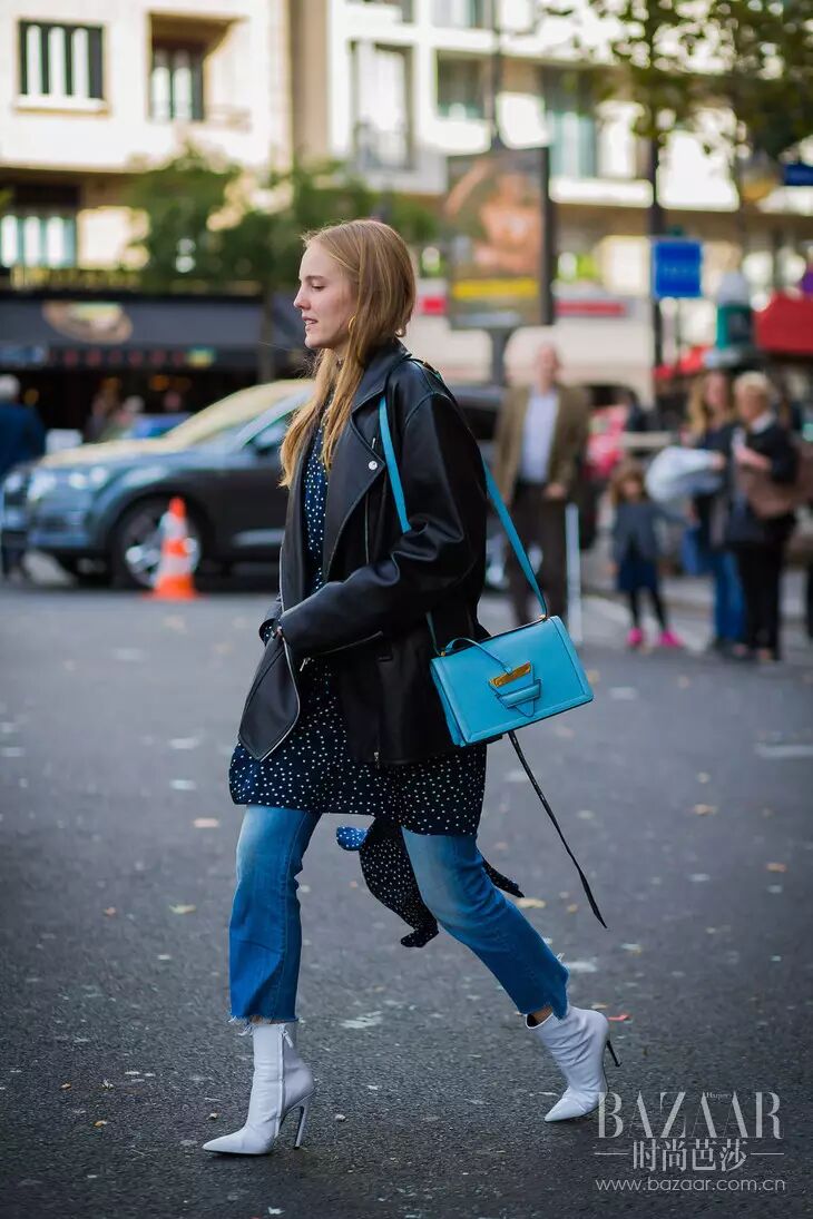 小白靴跟牛仔裤是标配,简简单单穿出时髦清新感。