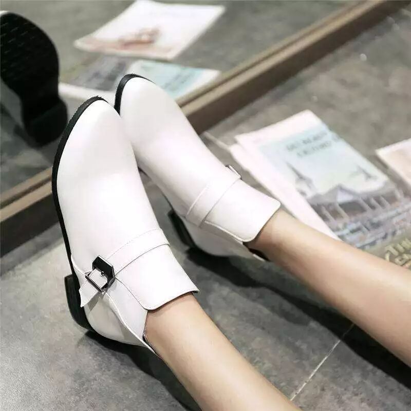 及踝小白靴的款型很适合中等身材或身材娇小的妹子,低靴筒使露出的小腿长度增加,能够将腿部线条拉长,能够更好地展现身材比例!