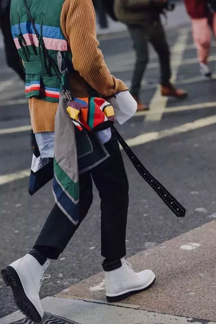 白靴真的一点也不小白,尤其是白袜搭上踝靴,一扫原本浓重的old school气息,变得新潮带点侵略性,十分能增强气场。
