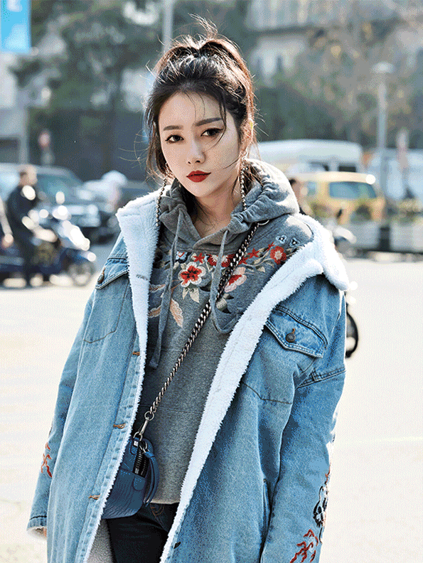 羊羔毛内胆的牛仔外套很适合大寒冬,这样的外套也几乎成了冬日里可以和大衣抗衡的单品之一。