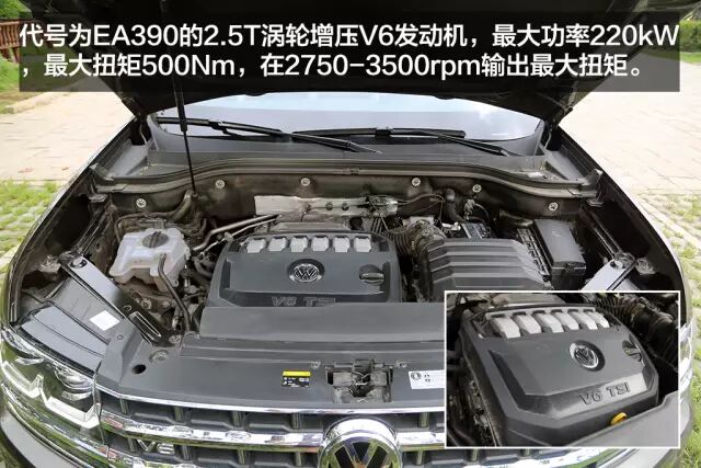 最后我们不得不提到途昂的这套动力系统,这是一台代号为EA390的2.5T涡轮增压V6发动机,最大功率220kW,最大扭矩500Nm,在2750-3500rpm输出最大扭矩。先抛开参数不谈,V6发动机的种种优点就已经完美继承,每一次深踩油门,来自V6发动机独有的怒吼会让你的驾驶充满艺术感,而V6发动机浑厚而持久的动力输出让你的驾驶充满了自信,相信你会爱上V6发动机的。