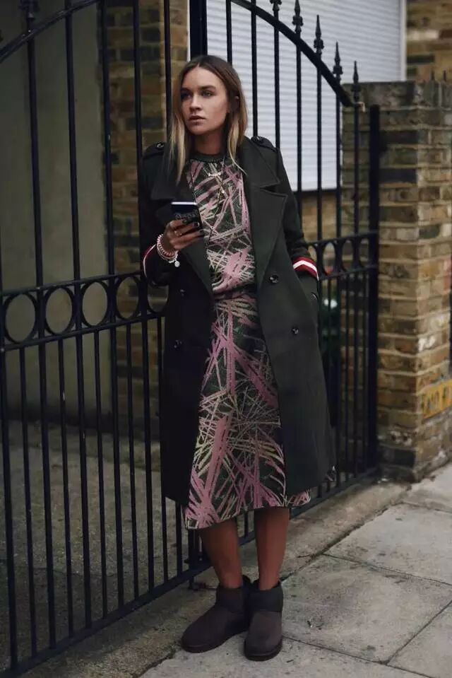 开衫毛衣本身就是自带几分质感和时装性,搭配裙装完美惊艳全场!灰色雪地靴为裙装加了不少温暖度和高级!