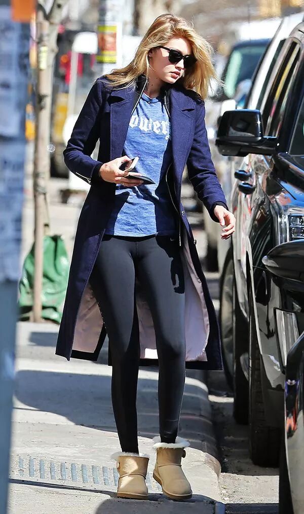 巧色雪地靴+紧身裤搭配同色羊羔毛!小个子也能穿出大长腿!穿什么高跟鞋!