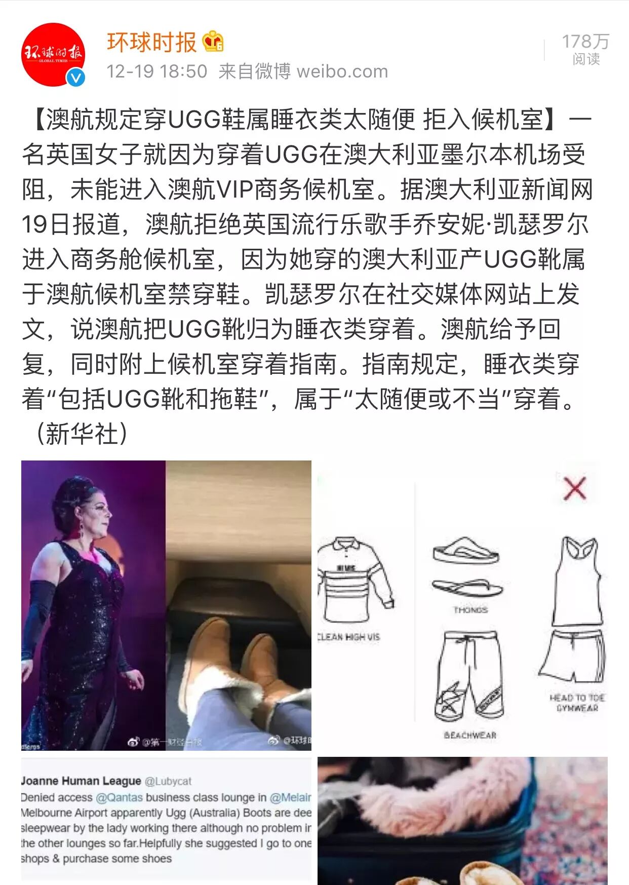 UGG上头条!刷新我的世界观,澳航规定UGG鞋属于睡衣类,不准进入候机室!原因太随便 ?雪地靴心中一万个疑问:什么时候我变成拖鞋的?我怎么自己个儿都不知道这事儿!