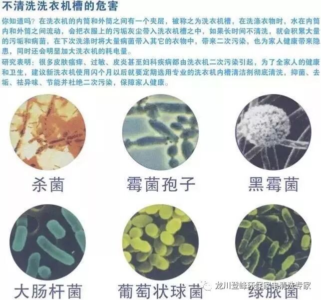 答:洗衣机粗看起来是比较干净,但洗衣机内桶的外面还套有一个桶,洗衣水就在这两层中间进进出出,日久天长便藏污纳垢。这些污垢附着在内桶的外壁(也就是我们通常所说的洗衣槽),我们是看不见的。由于洗衣机内部非常潮湿,这些污垢将在洗衣机内部发酵,并滋生大量细菌,洗衣时会污染衣物并带给人体,从而影响我们的身体健康。