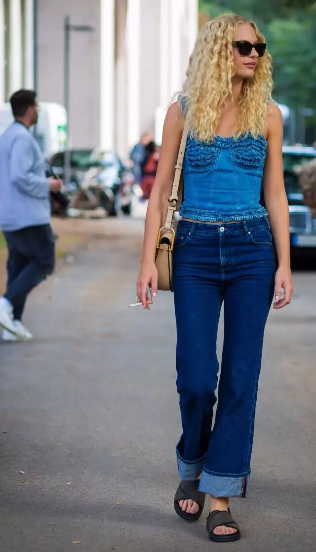 接着流行的款式设计也趋向于直筒剪裁,这个潮流再让直筒反摺7分牛仔裤广受瞩目。