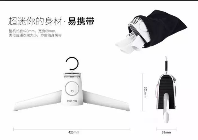 出门旅行想轻装上阵,换洗衣服带得少了总怕洗了干不了;单位出差要去全国各地跑,这个酒店还没睡上两晚就要去下个目的地,昨儿洗的衣服还没干透;家里常住人口多,更关键是东西多,再添置个家具都没地儿放……多种问题,一个对策,卡蛙SmartFrog便携式干衣机解决你的后顾之忧。