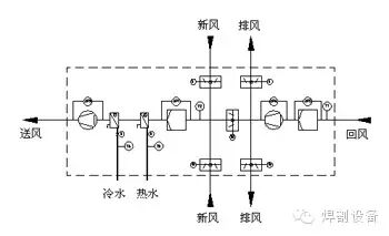 (3)对北方冬季气温较低、车间有供暖设施的地区,在空气处理机组内设置新风加热器,使送入车间的新风不至于因温度太低而影响车间温度。