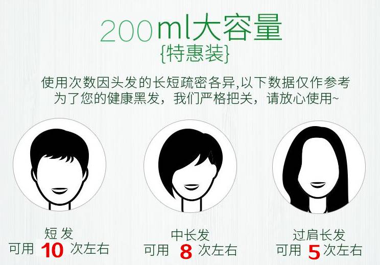 不限次数染 洗头就是染发,白了就洗,哪白洗哪!洗头就是染发,想染就染! | 一年染不了几次 出于时间、金钱、健康等考虑…一年染不了几次,不能保持整年满头黑发形象! |