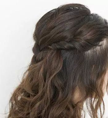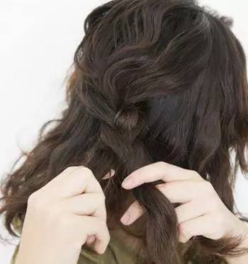 第四步:将这股头发扭转后向后拉到麻花辫的右侧。