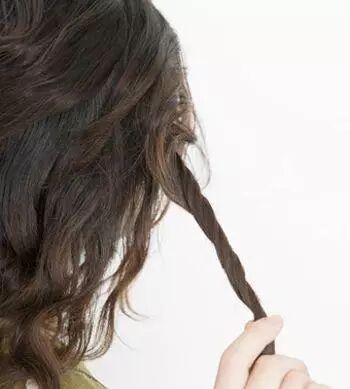 第三步:将右耳前方的头发拉住了,扭转成麻花状。