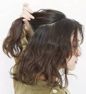 第一步:胖MM用手将齐肩蛋卷头短发梳理通顺,然后将发旋正上方的头发分离出来,向后拉在一起。