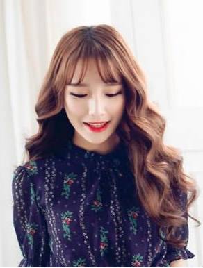 1、大卷度的水波纹烫发搭配着空气刘海,清新迷人,长发水波纹清纯又甜美,搭配棕色系染发,时尚又有气质,美美哒。
