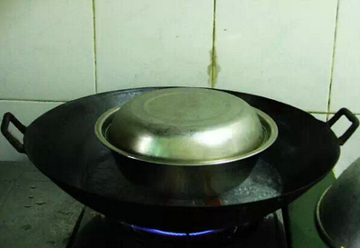 放在锅上蒸,先用大火蒸15分钟,转中小火蒸90分钟,注意要不时检查加水,以免蒸干水