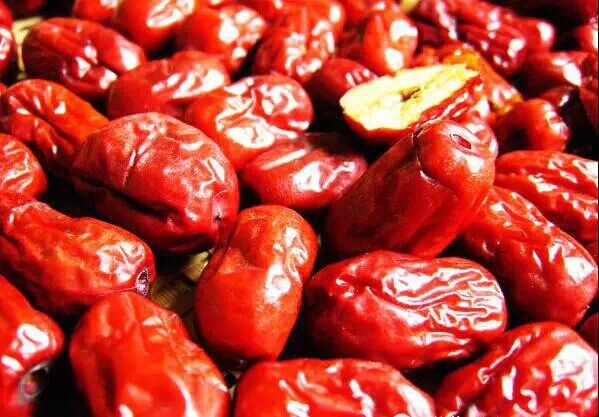 红枣最好选用无核的,因为要打枣泥,用搅拌机放些黄酒与红枣一齐打枣泥