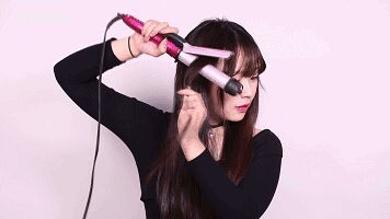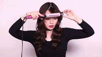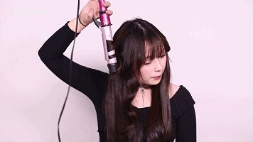 Step4:把卷发棒关掉后用余温把刘海向内卷,刘海两边的头发向外卷,刘海也搞定!