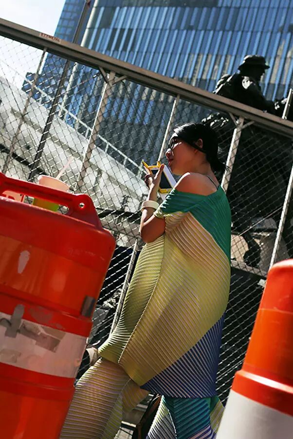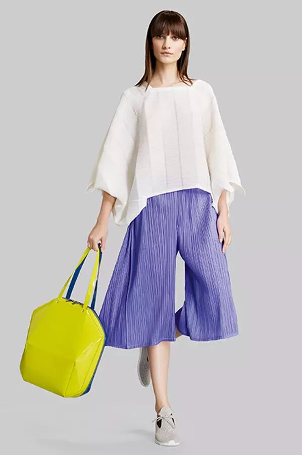 想把褶皱融入整体造型一部分而已,选择上装就OK。其他单品选择同色系就能非常出彩;褶皱在光影中有不同的形态,与不同材质的对撞十分有趣。