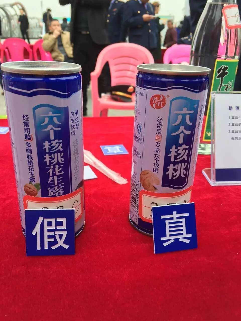 。在这里,工作人员带来了白酒、香烟、饮料、洗漱用品等20多组真假商品。