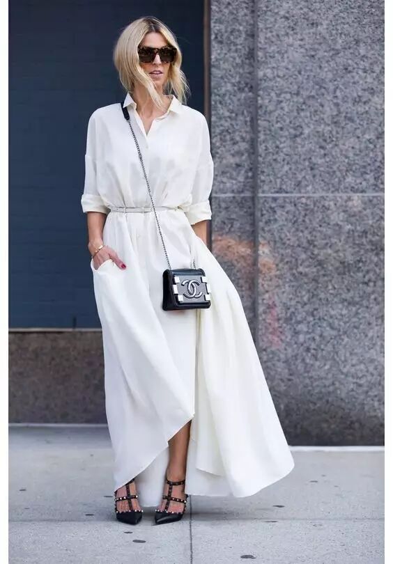 想要走女神范儿、仙女风,还有这种长裙和衬衫一体的衬衫裙,飘逸浪漫,充满女人味又不会过于妖娆。