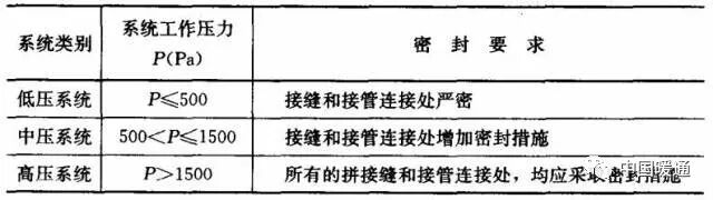 ●(3)按照通风空调系统工作压力可分为:高压风管、中压风管、低压风管三个类别,具体划分如表所示