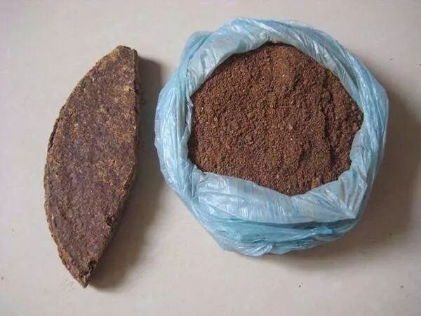 茶粕也叫茶麸、茶籽饼,颗粒呈紫褐色,是油茶籽经榨油后的渣饼,有效成分是皂角甙素,也是一种植物源农药,用于洗涤化工,机器除锈等。