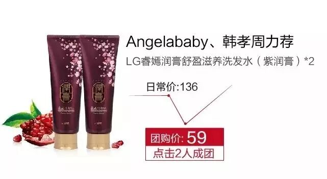 然鹅,蓓蓓为了向各位宝蓓未来的秀发献上祝福,特别献上一个更大的福利!原价136元,在蓓蓓家2人成团,59元就能买到两支LG睿嫣润膏无硅油洗护合一洗发水!
