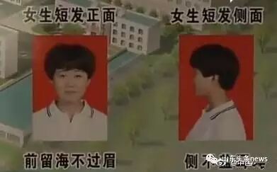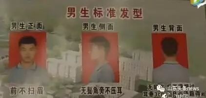 据此前当地报道,济南市历城职业中等专业学校门口的展板上对学生发型做出要求:男生统一短发,发型标准为“标准平头”,要求在一厘米到三厘米之间;女生齐耳短发,发型标准为“前不遮眉,侧面露耳,后不过颈”。