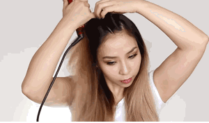 4.利用卷发器将下层头发的发根部分加热,烫出纹理,再将表面头发梳理好,盖住烫过的头发,头发就变得自然又蓬松啦~
