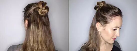 Step 3:然后将头发分成两等分,像拧麻花一样拧起来。