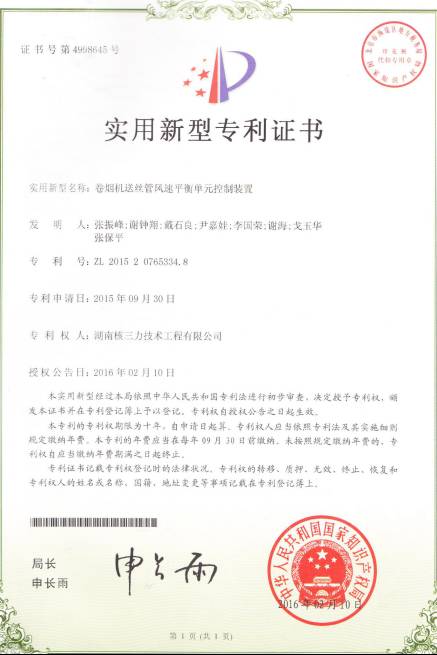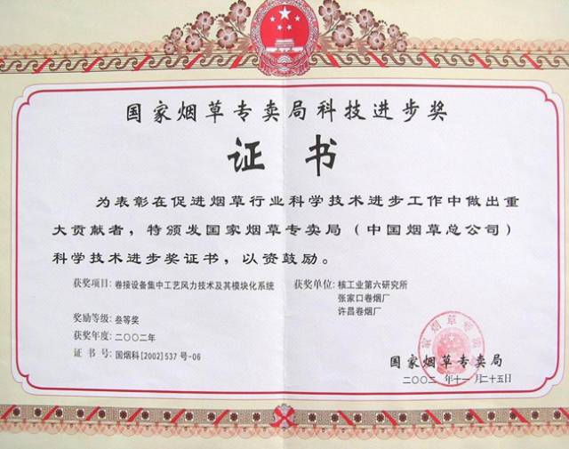 该技术是1990年研究开发的一项具有国际独创性的技术,广泛适用于各类卷接设备风力与除尘技术改造。1992年获国家发明专利(专利号:ZL 92 1 09157.5)、1993年获第42届比利时布鲁塞尔尤里卡国际发明博览会金奖,1995年获中国专利十年成就展金奖。2001年通过了国家烟草专卖局组织的技术鉴定,项目整体水平处于国内烟草行业领先地位,达到同行业国际先进水平。2002年获国家烟草专卖局科技进步三等奖。