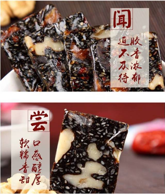 每每入秋之后,大家也能在市面上看到不少阿胶糕,而品质也参差不齐,好的阿胶糕用料极其讲究。采用山东阿胶镇的阿胶,真材实料看得见,红枣、核桃仁、黑芝麻以及绍兴黄酒,都是严控品质。
