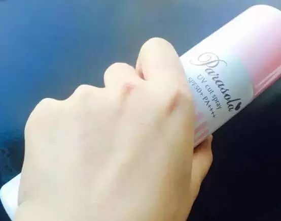 喷到肌肤上非常的冰凉舒服。而且它是透明型的,不会泛白,不但肌肤能够使用,对头发也能起到防晒的功效。