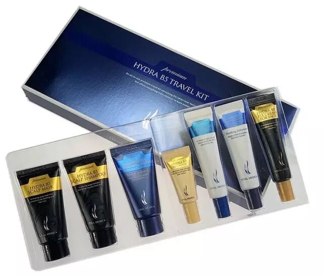 小小的一盒里面包括了玻尿酸洗发水、护发膜、洗面奶,还有一支4代眼霜、三合一精华、隔离霜、BB霜,每一支都小小的,但足够用,能给你的行李箱腾出好多地方呢!
