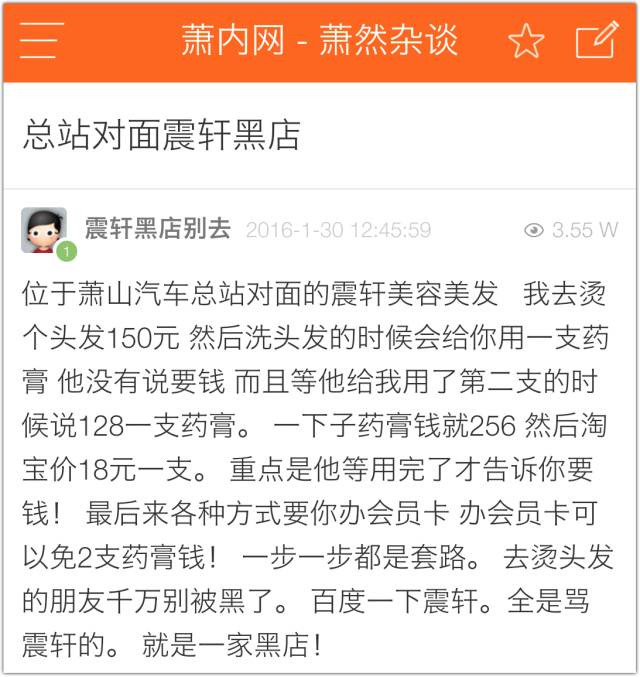 相关链接:萧山又一家套路店被曝光!男子理完发,结账时吓尿了