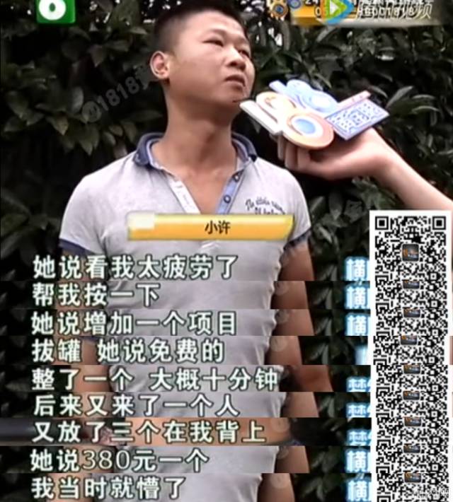 店员说,可以帮他做一个理疗服务,减少身体疲劳,这个项目叫「竹排」,类似于拔火罐,只不过罐子是用竹子做的。这个项目按照穴位收费,每个穴位的价格是380元,三个穴位价格是1140元钱。