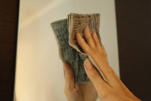 浴室柜或洗手盆上面的浴镜也最好每天清洁,防止因长时间使用而出现难去的污迹和镜面伤痕,这时就轮到报纸出场了。报纸上的墨水,不但能去除污迹,墨水里的油脂还能在物体表面附上一层薄膜,让污迹难以附着。方法是,将整块浴镜用水沾湿,再用湿润的报纸擦掉污迹,随后用一张干的报纸擦走浴镜上的水分。这个方法不但适用于浴镜,在清理卫生间的窗户时也能用上。