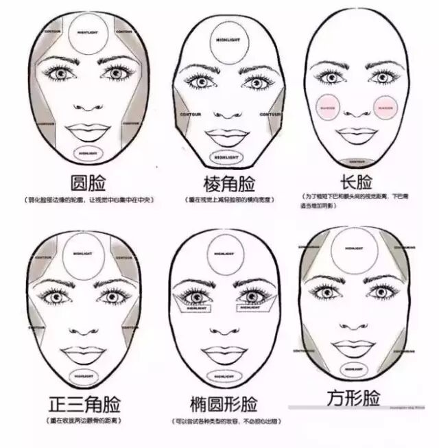 附一张各种脸型的修容图,供大家参考哦~
