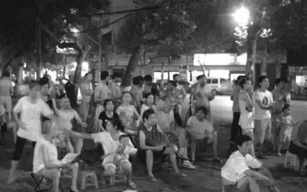 夏天的晚上,大家都集中在小广场上乘凉,大人们聊天,小孩子们则玩疯了。直到广场上放电影,大家才会安安静静地坐着不动。