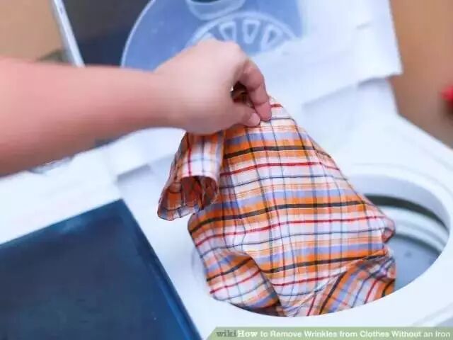 将衣服和冰块一起放入烘干机,大概烘干15分钟,冰块会融化变成蒸汽,从而去除褶皱,再将它挂起来或直接穿。