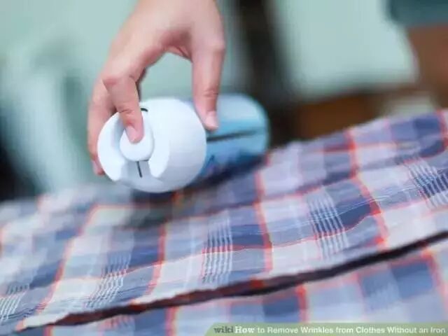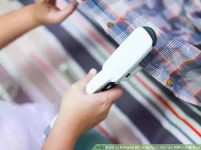没有熨斗时,先在衣服上喷点水,然后将吹风机调至最低档隔2厘米吹衣服,很快褶皱就会消失不见。