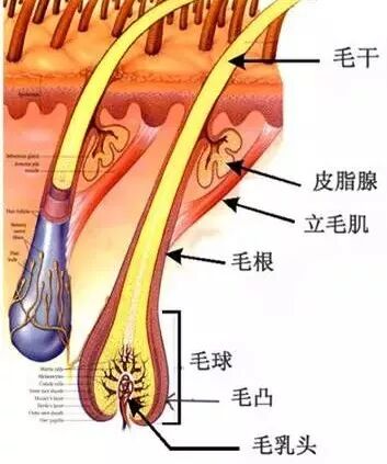 头发的生理特征和机能主要取决于头皮表皮以下的毛、毛囊和皮脂腺等。(头发是指在头顶和后脑勺部位的毛发,头发从下向上可分为毛、毛囊、毛根和毛干四个部分)头发发枯干燥是指头发失去水分和油脂的滋润,而导致头发干枯易折断,发尾出现分叉现象,是目前常见的现象。