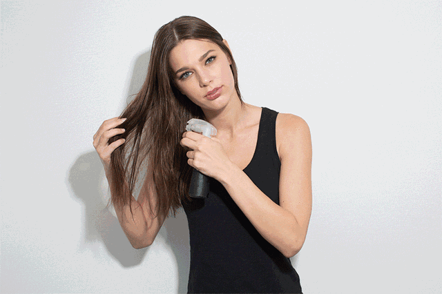 用喷雾轻轻将头发弄湿,使头发大约七八分干。