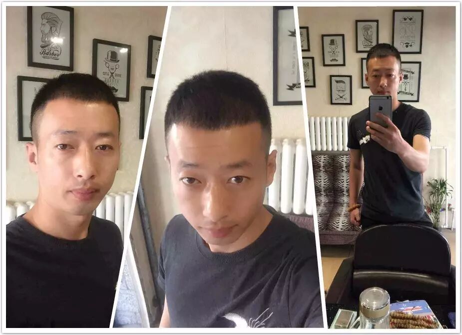 图为曹德扬植发第7个月零14天,理发店内各种角度、各种姿势、各种拍。