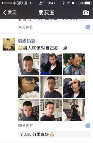 据他说,脱发的10年间,他尝遍了市场上的增发生发的药水,涂的,抹的,擦生姜,吃中药,几乎所有的生发增发方法都试了一个遍,但最终还是没有起到好的效果。
