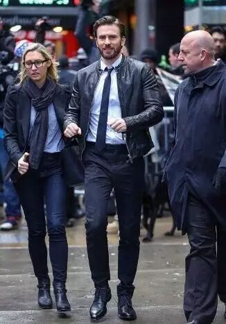 推荐夹克,军事风、牛仔风都可以,请选择下摆稍微高一些的,长度大概在腰线附近,这样可以拉长你的短腿,凸显腿部线条,显得比例更好。棕色或者黑色适用范围最广。避免白色,穿不好很俗气!